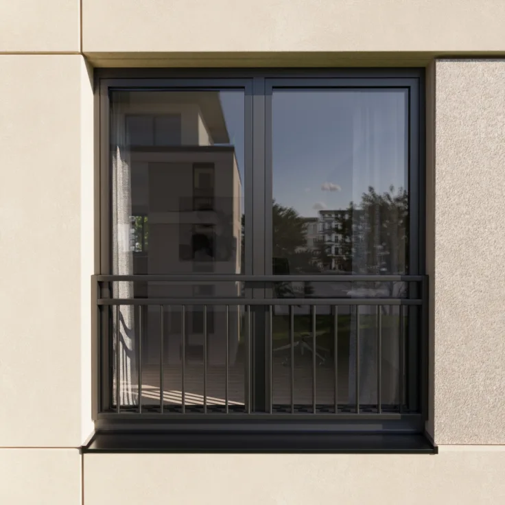 Una superficie de aluminio purista de alta calidad en el exterior y PVC altamente aislante en el interior: la combinación perfecta de dos materiales que además satisfacen las ideas de diseño individuales en cuanto a aspecto enrasado y variedad de colores.