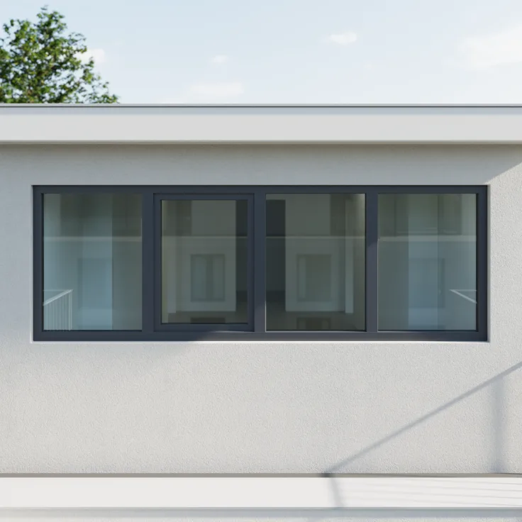 Schüco LivIng 82 AS Classic, finestra a nastro a quattro elementi con un'anta apribile (apertura anta/ribalta)